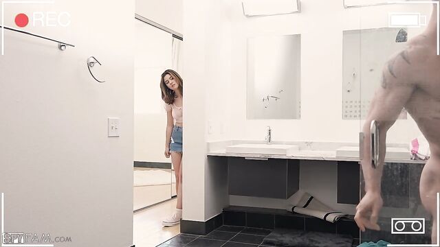 Descrizione: Ellie creeps on her buff stepdad while he’s working out and taking a shower.