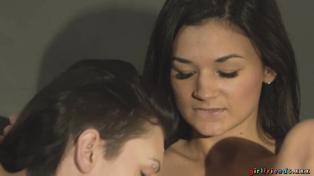 Description:Keira and Kara are just hanging out on the sofa together when Keira makes an interesting discovery. While browsing the internet on her phone she learns that every women has a g-spot and must confess to not having found hers. Luckily her close friend Kara is there to help her find it with some talented fingers, passionate oral, and a nice thick strap on!