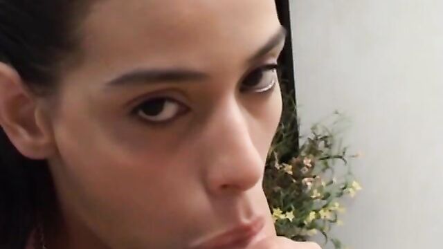 Description:Sweet-looking petite cutie Sol works her pierced tongue as she licks and sucks on lucky stud’s huge dick. With a seductive look and pleasure moans she enjoys herself until she gets that creamy load delivered straight into her talented mouth.